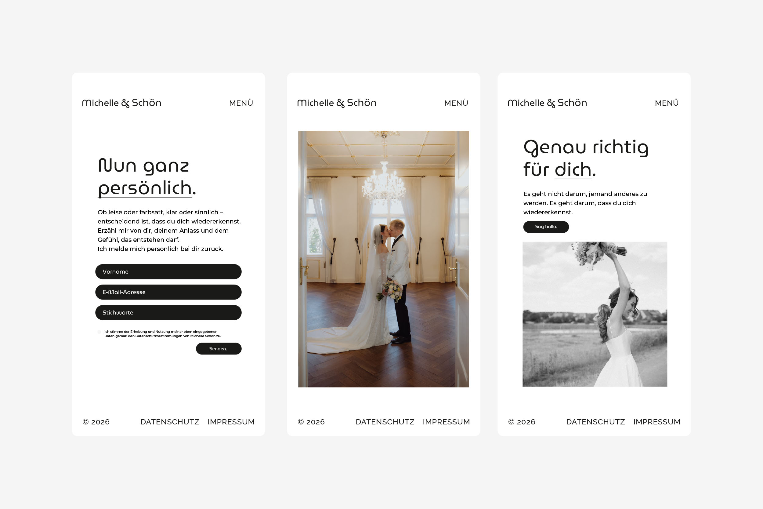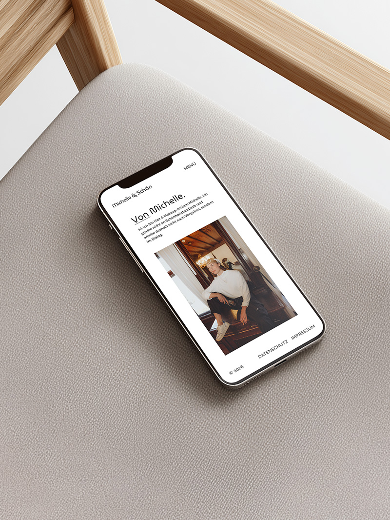Inhalt, Bild, Layout und Technik greifen ineinander. Der Web-Relaunch übersetzt Michelles Arbeitsweise in eine digitale Sprache, die Klarheit schafft und ihren einzigartigen Stil transportiert.